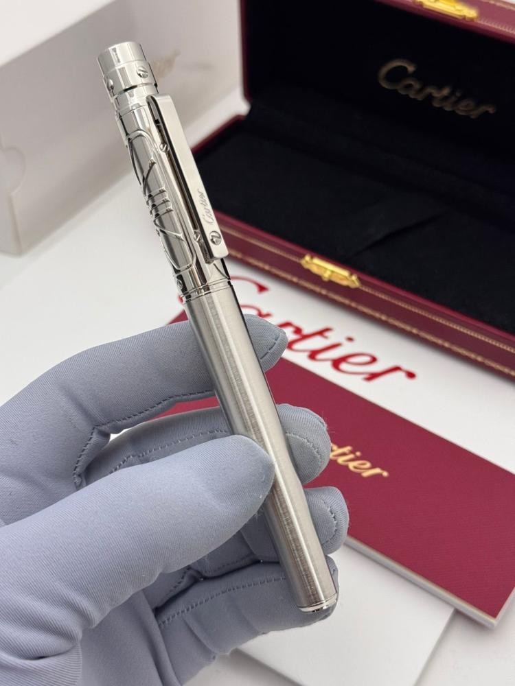 تميّز بالفخامة في أدق تفاصيلك مع قلم Santos de Cartier من نوع Rollerball، المصنوع من المعدن الفاخر والمطلي بطبقة بلاديوم أنيقة. تصميم معدني محفور مستوحى من أشهر مجموعات كارتير، ومناسب لهواة الأناقة والدقة في الكتابة.